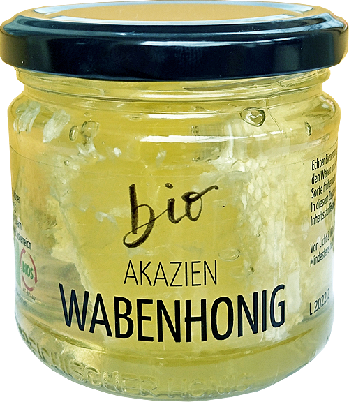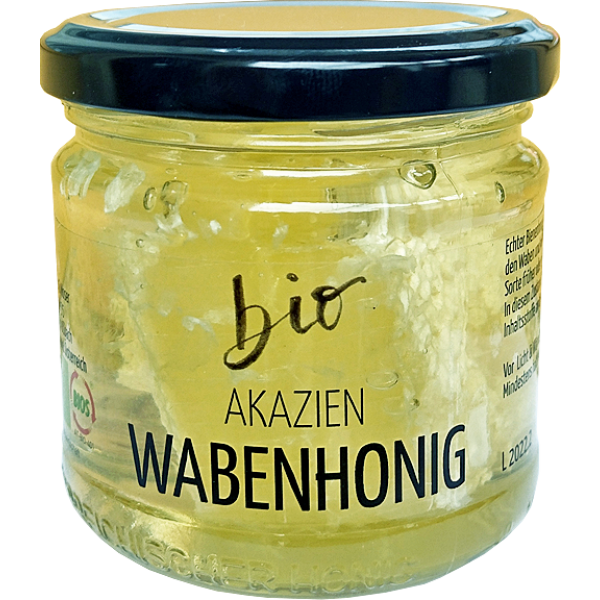 Ein wunderbarer Bio-Waben-Akazienhonig aus dem südwestlichen Weinviertel. "Er" besticht durch seinen milden, lieblichen Geschmack und diesen feinen, aromatischen Duft. Darüber hinaus kann man dieses herrliche Wabenelement mitkauen und natürlich auch essen. Die Wabe intensiviert nochmals den Geschmack des Honigs.